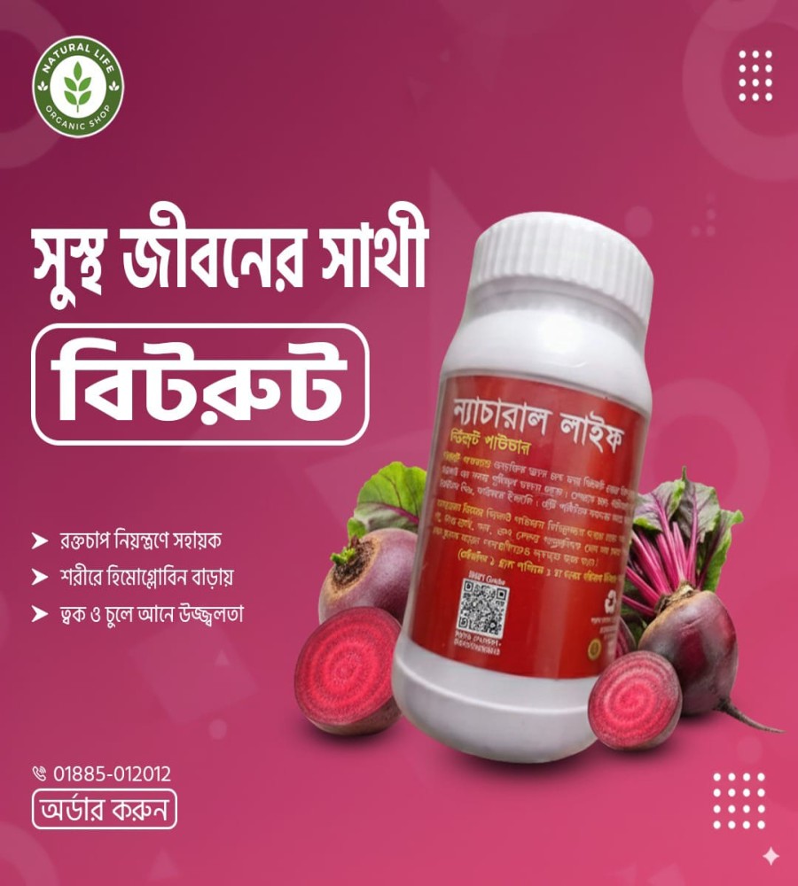 তাই Natural Life নিয়ে এসেছে ✅ ১০০% অর্গানিক বিটরুট পাউডার, যা সম্পূর্ণ প্রাকৃতিক উপায়ে প্রস্তুত এবং কোনো প্রকার রাসায়নিক উপাদানমুক্ত।